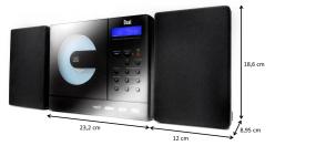Die kompakte Anlage der Marke Dual zeichnet sich durch zahlreiche Funktionen aus. Über die MP3-fähigen USB- und SD-Eingänge sowie den AUX-Eingang können alle mobilen Audiokomponenten - USB-Sticks, SD-Karten und reguläre MP3-Player - mit der Dual Vertical 150 verbunden werden. Zusätzlich zum Radioempfang und der Möglichkeit 30 Ihrer Lieblingsradiosender auf den Festspeicherplätzen abzuspeichen wird das Bild der Kompakt-Anlage durch die integrierte Uhr mit Weckfunktion abgerundet. Alternativ zur herkömmlichen Standanlage bietet sich die Micro-Anlage zur Wandmontage an. die Dank geringer Gerätetiefe findet das Gerät selbst auf schmalsten Regalstegen in Küche oder Wohnzimmer einen sicheren Aufstellplatz.